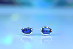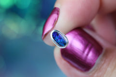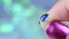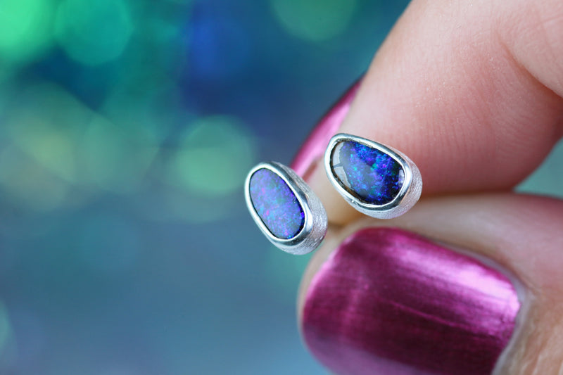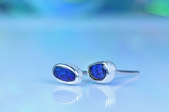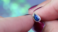 Diese Ohrstecker aus 925er Silber tragen australische Opale mit einem faszinierenden Farbspiel in Blau und Violett – wie kleine Sternentore, die an einen klaren Nachthimmel mit funkelnden Sternen erinnern: still, geheimnisvoll und voller Wunder.