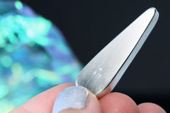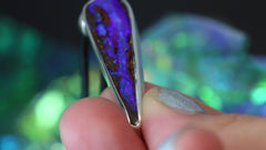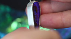 Ein schlichtes Silberdesign lässt das schillernde Farbenspiel des Opals in Blau- und Violetttönen richtig zur Geltung kommen. Dieser seltene hochwertige Opal wurde vom Schweizer Opalschleifer Ike Opals professionell geschliffen und poliert.