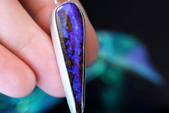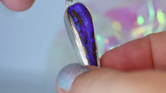 Dieser besondere BLUE LAVA Opal-Anhänger trägt einen magischen australischen Wood Boulder Opal in sich – ein echtes Naturwunder - als Talisman zum Tragen.