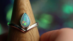 Der LACRIMA Ring ist Ausdruck von Emotion und Wandel. Handgefertigt aus 925er Sterling Silber trägt er einen echten Crystal Opal in Tropfenform der mit seinem funkelnden Farbspiel in allen Farben erstrahlt – ein echtes Unikat.