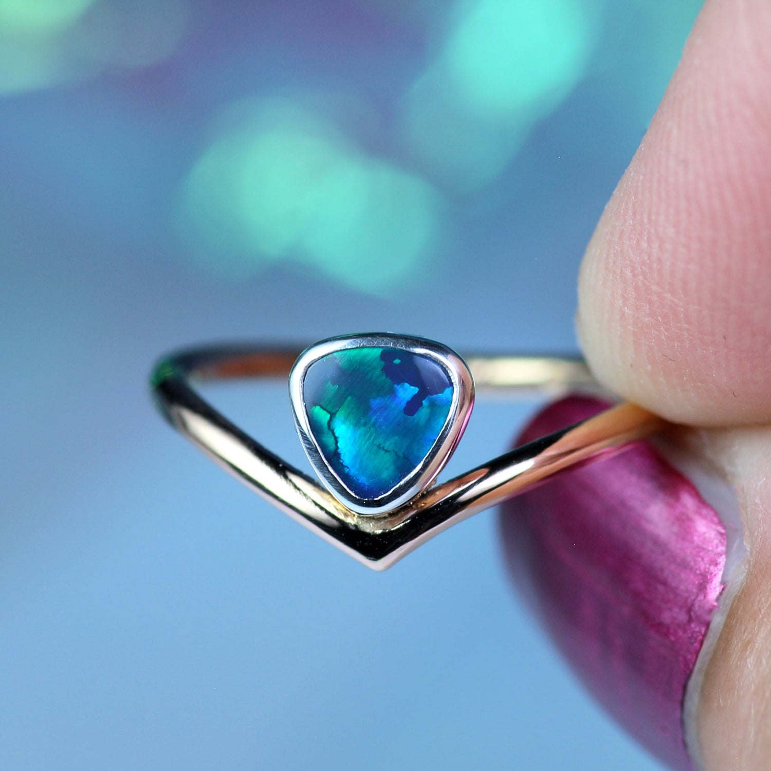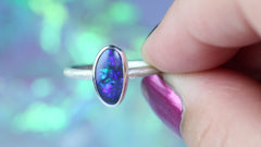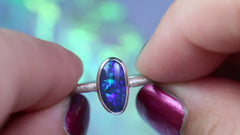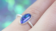 LUNA NOVA Opal Silberring – Tiefblau wie der Nachthimmel, leuchtend wie neue Träume: Der Opal in Indigo, Blau und Grün fängt die Energie des Neumondes ein.