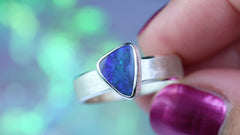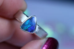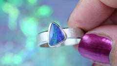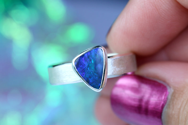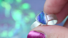 MARIS ASTRALIS – Ein bezaubernder Boho Silberring mit einem Black Opal der in tiefen Blautönen leuchtet – wie Wasser, das im Mondlicht tanzt.