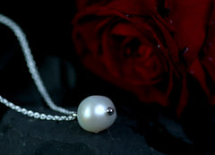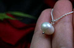 Die edle Süsswasserperle wird sorgfältig von Hand gefasst – nicht einfach aufgereiht, sondern einzeln montiert, sodass sie frei und leicht schwingt. Ihre sanfte, natürliche Struktur verleiht jeder Kette eine ganz eigene Persönlichkeit.